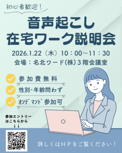 在宅技術者募集に当たり、令和8年1月22日木曜日10時から説明会を開催いたします。